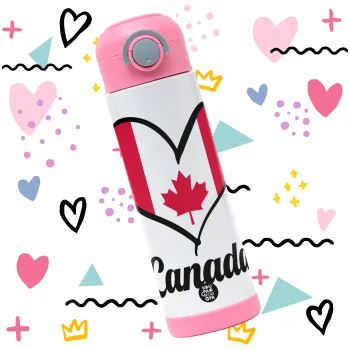 Canada flag, Children's hot water bottle, stainless steel, with safety straw, PINK (500ml)