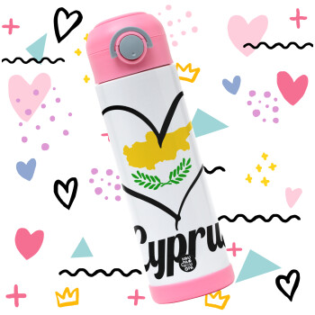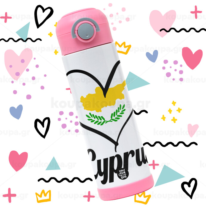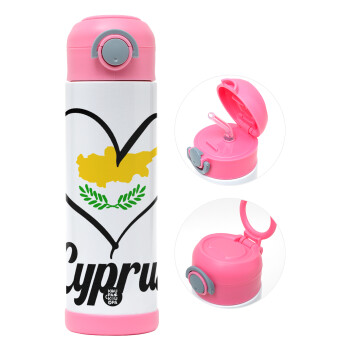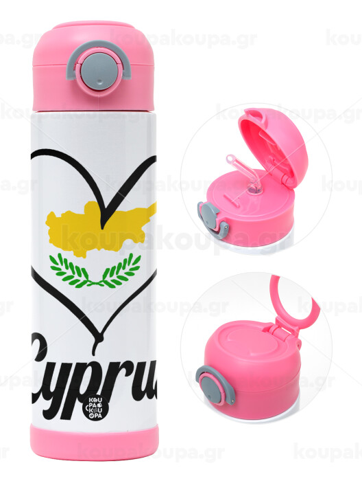 Cyprus flag, Children's hot water bottle, stainless steel, with safety straw, PINK (500ml)