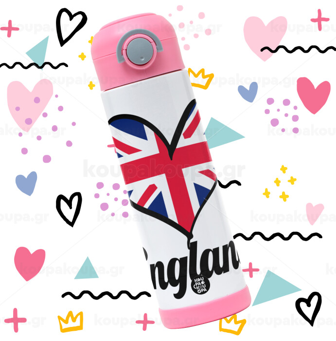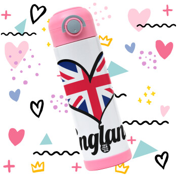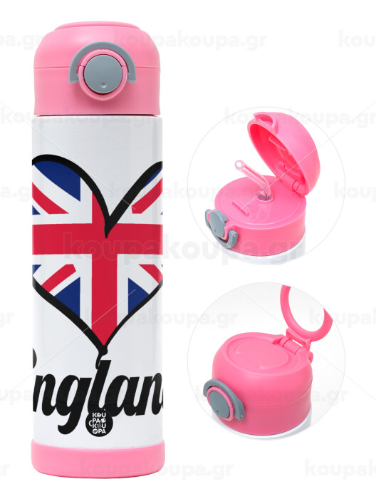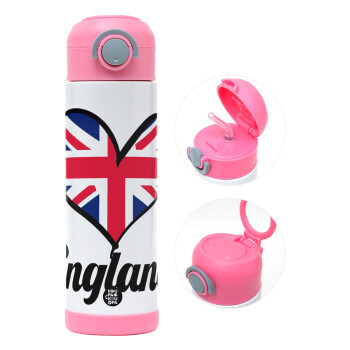 England flag, Children's hot water bottle, stainless steel, with safety straw, PINK (500ml)