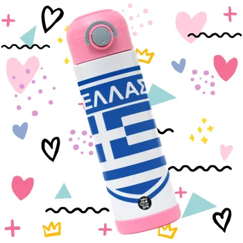 Hellas, Children's hot water bottle, stainless steel, with safety straw, PINK (500ml)