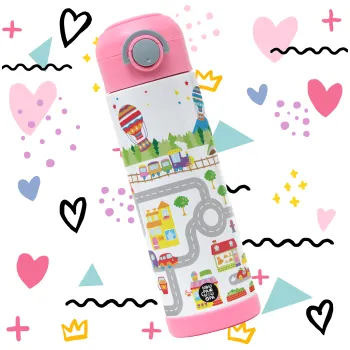 City road track maps, Children's hot water bottle, stainless steel, with safety straw, PINK (500ml)