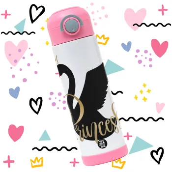 Swan Princess, Children's hot water bottle, stainless steel, with safety straw, PINK (500ml)