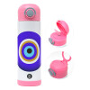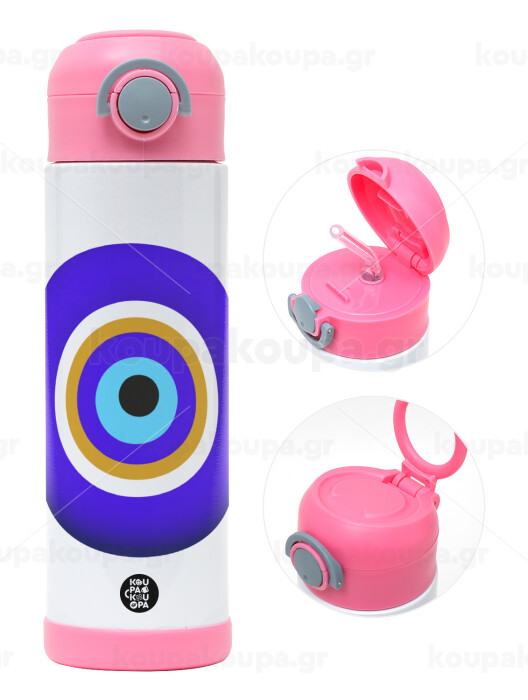 Το μάτι, Children's hot water bottle, stainless steel, with safety straw, PINK (500ml)