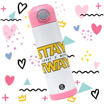 Stay Away, Children's hot water bottle, stainless steel, with safety straw, PINK (500ml)