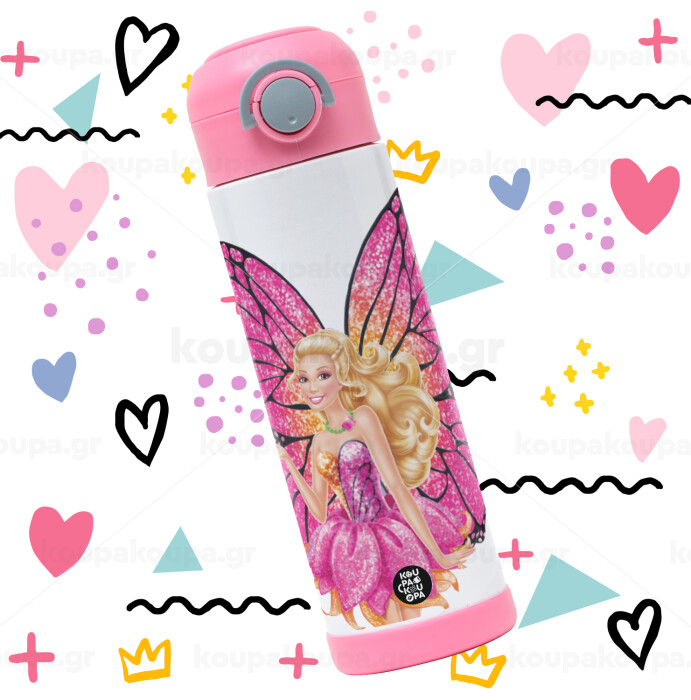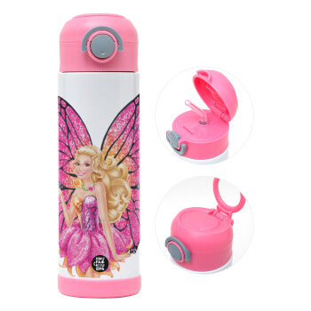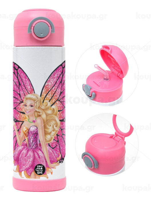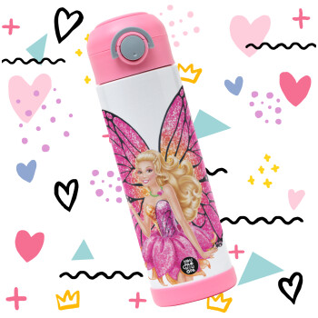 A fairy Barbie, Children's hot water bottle, stainless steel, with safety straw, PINK (500ml)