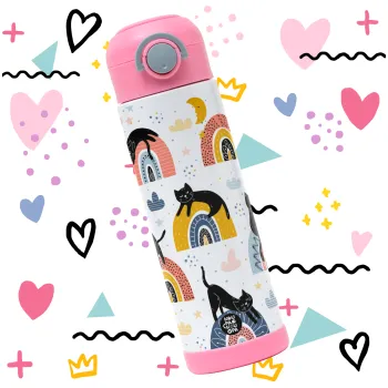 Γατούλες, Children's hot water bottle, stainless steel, with safety straw, PINK (500ml)
