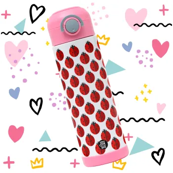 Coccinella, Children's hot water bottle, stainless steel, with safety straw, PINK (500ml)