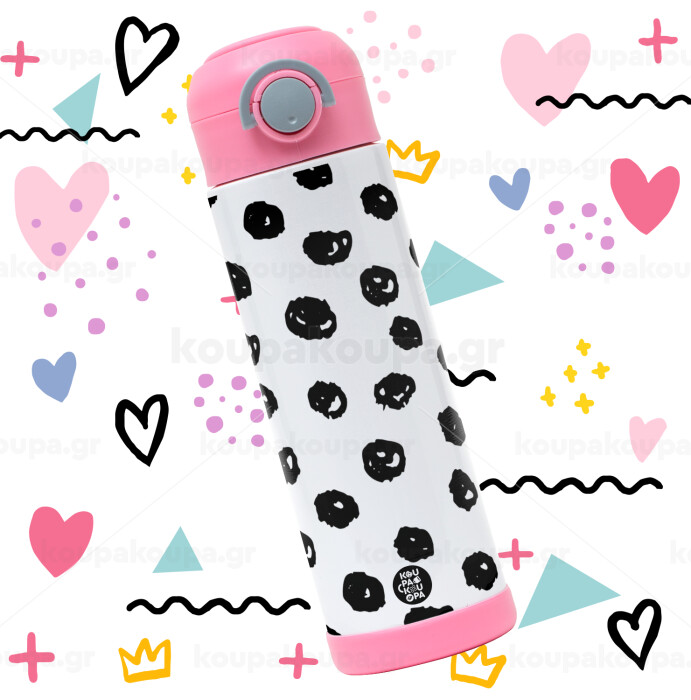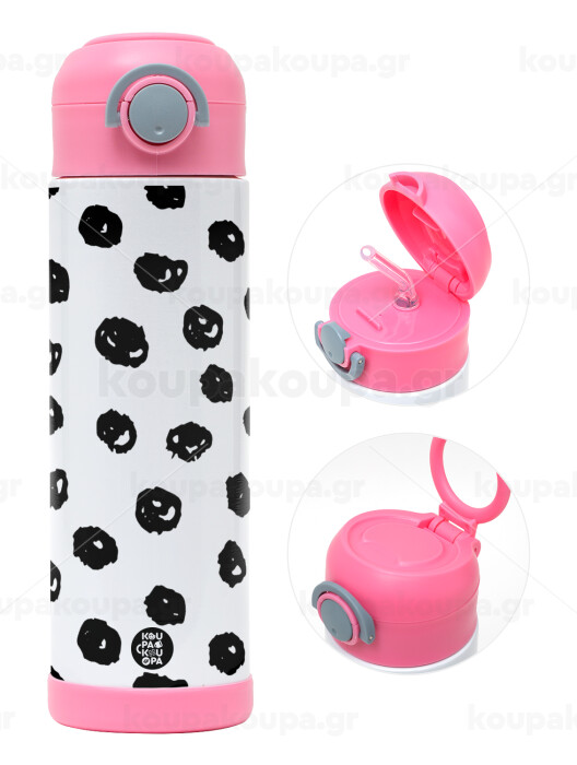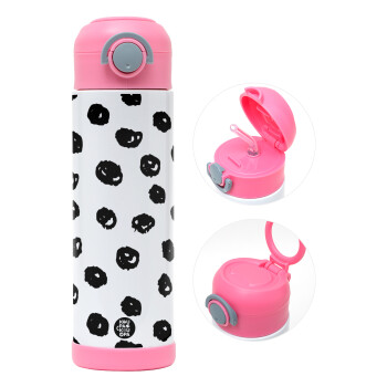 Doodle Dots, Children's hot water bottle, stainless steel, with safety straw, PINK (500ml)