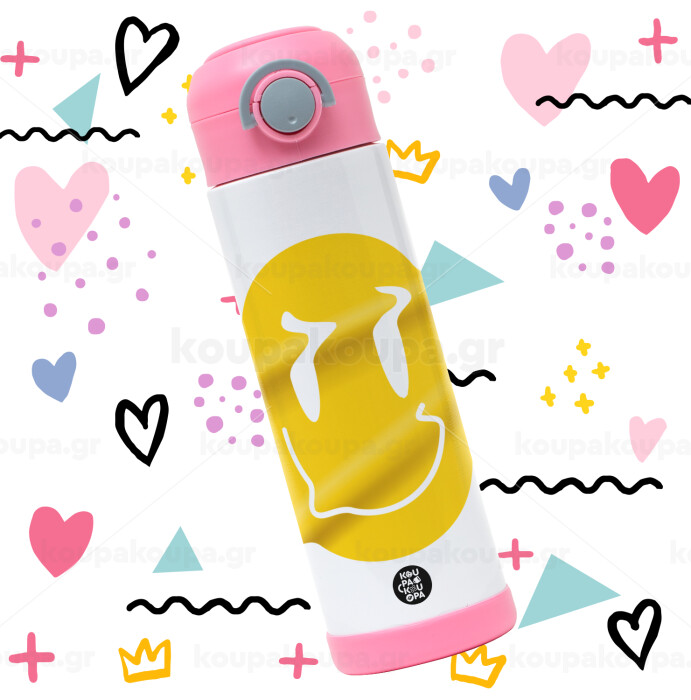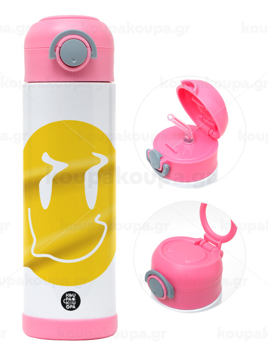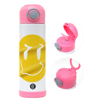 Smile avatar distrorted, Children's hot water bottle, stainless steel, with safety straw, PINK (500ml)