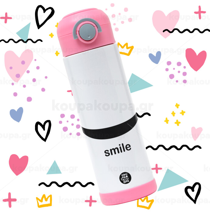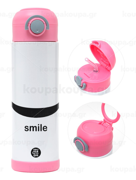 Smile!!!, Children's hot water bottle, stainless steel, with safety straw, PINK (500ml)