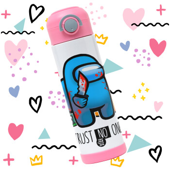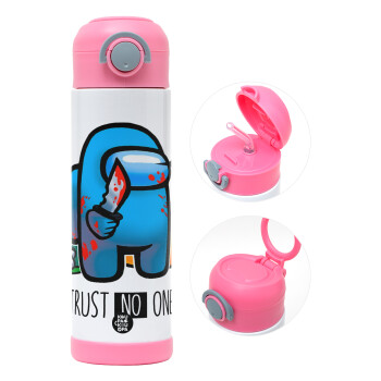 Among Trust no one, Children's hot water bottle, stainless steel, with safety straw, PINK (500ml)