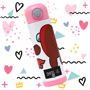 Among US i am impostor..., Children's hot water bottle, stainless steel, with safety straw, PINK (500ml)