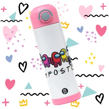 Among US impostor, Children's hot water bottle, stainless steel, with safety straw, PINK (500ml)