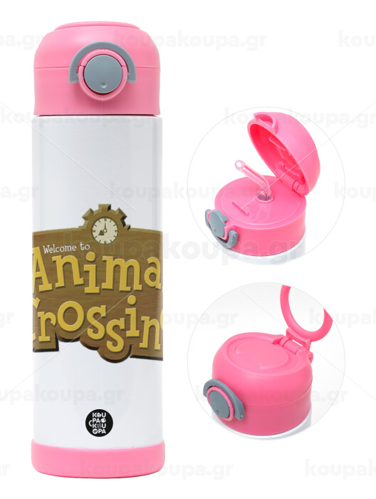 Animal Crossing, Children's hot water bottle, stainless steel, with safety straw, PINK (500ml)