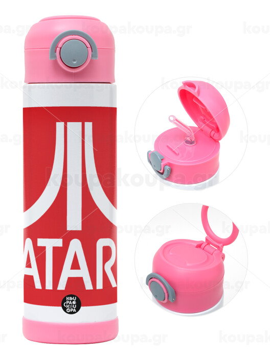 atari, Children's hot water bottle, stainless steel, with safety straw, PINK (500ml)