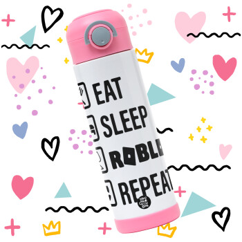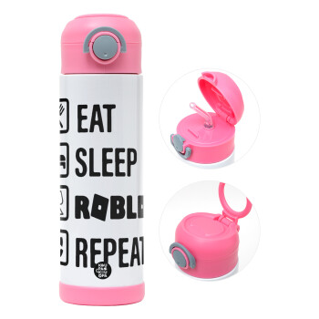 Eat, Sleep, Roblox, Repeat, Children's hot water bottle, stainless steel, with safety straw, PINK (500ml)