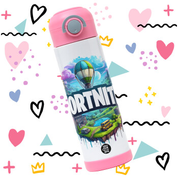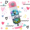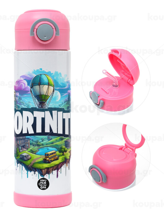 Fortnite land, Children's hot water bottle, stainless steel, with safety straw, PINK (500ml)