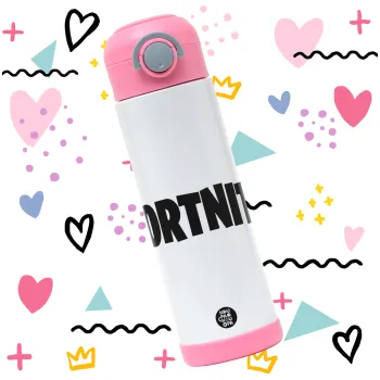 Fortnite landscape, Children's hot water bottle, stainless steel, with safety straw, PINK (500ml)
