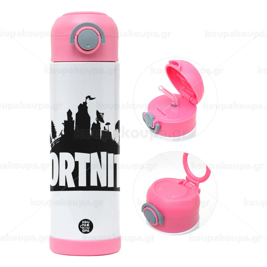 Fortnite, Children's hot water bottle, stainless steel, with safety straw, PINK (500ml)