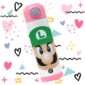 Luigi flat, Children's hot water bottle, stainless steel, with safety straw, PINK (500ml)