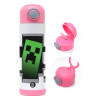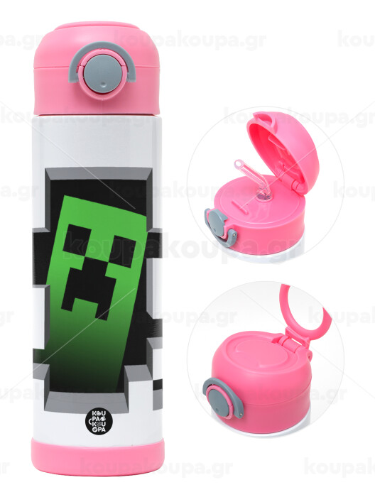 Minecraft creeper, Children's hot water bottle, stainless steel, with safety straw, PINK (500ml)