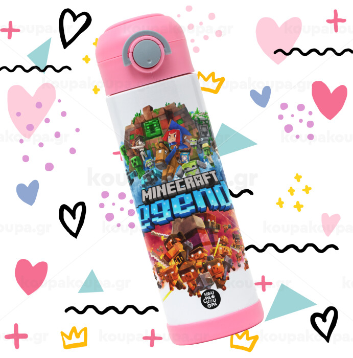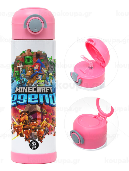 Minecraft legends, Children's hot water bottle, stainless steel, with safety straw, PINK (500ml)