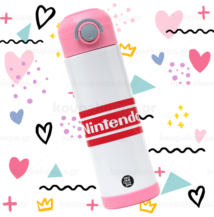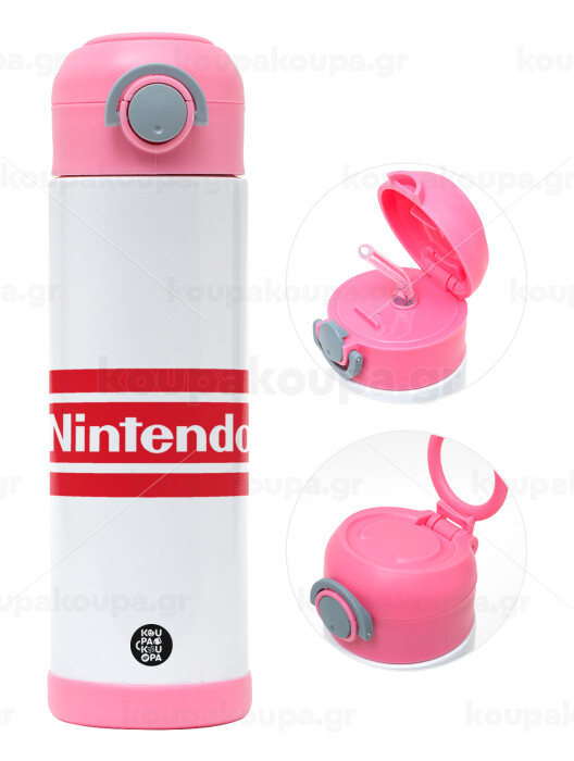 Nintendo, Children's hot water bottle, stainless steel, with safety straw, PINK (500ml)