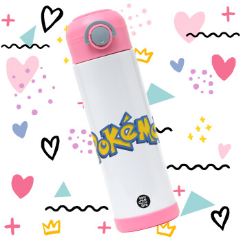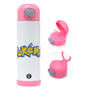 Pokemon, Children's hot water bottle, stainless steel, with safety straw, PINK (500ml)