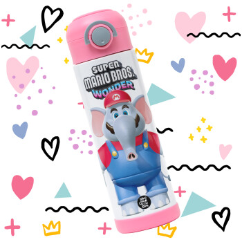 Super mario wonder, Children's hot water bottle, stainless steel, with safety straw, PINK (500ml)