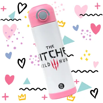 The witcher III wild hunt, Children's hot water bottle, stainless steel, with safety straw, PINK (500ml)