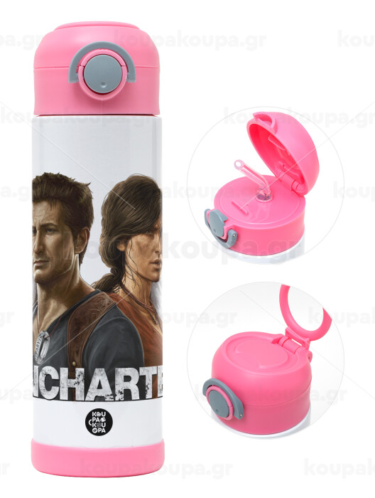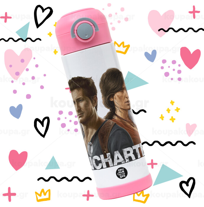 Uncharted, Children's hot water bottle, stainless steel, with safety straw, PINK (500ml)
