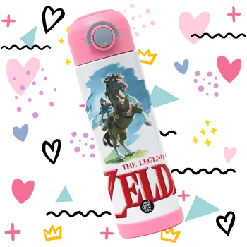 Zelda, Children's hot water bottle, stainless steel, with safety straw, PINK (500ml)