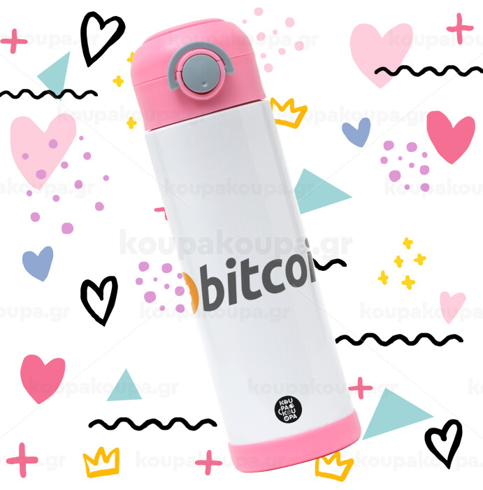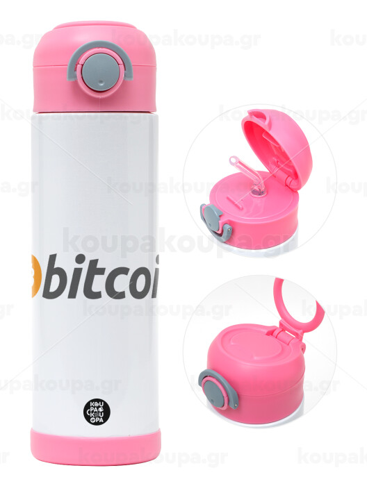 Bitcoin Crypto, Children's hot water bottle, stainless steel, with safety straw, PINK (500ml)