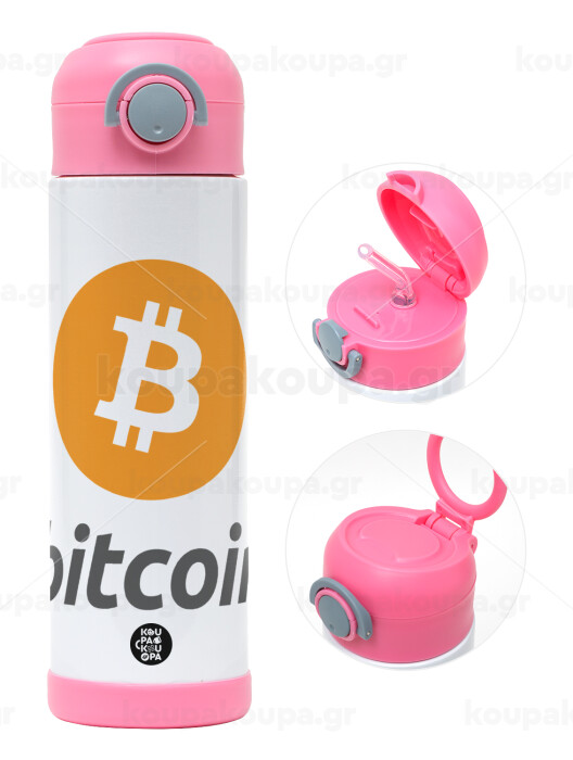 Bitcoin, Children's hot water bottle, stainless steel, with safety straw, PINK (500ml)