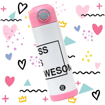 CSS is awesome, Children's hot water bottle, stainless steel, with safety straw, PINK (500ml)