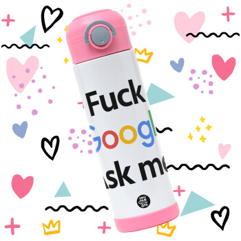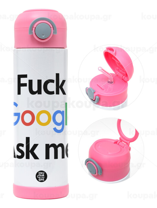 Fuck Google, Ask me!, Children's hot water bottle, stainless steel, with safety straw, PINK (500ml)