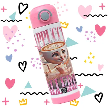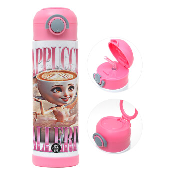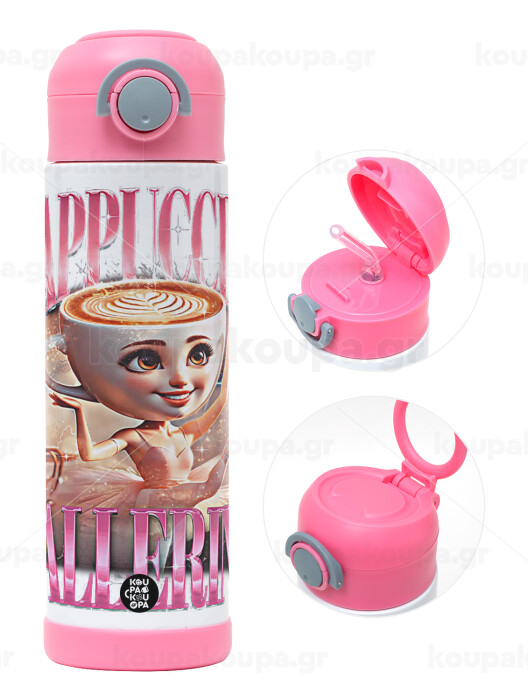 BALLERINA CAPUCHINA FUNK, Children's hot water bottle, stainless steel, with safety straw, PINK (500ml)