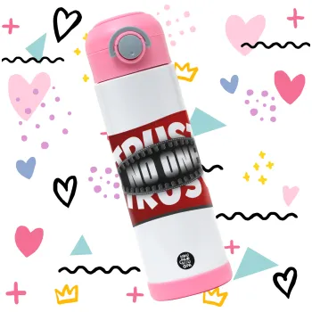 Trust no one... (zipper), Children's hot water bottle, stainless steel, with safety straw, PINK (500ml)
