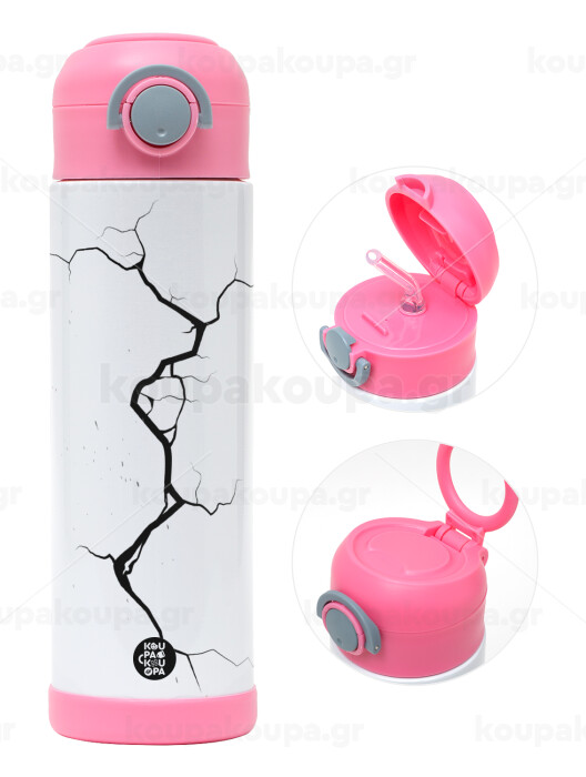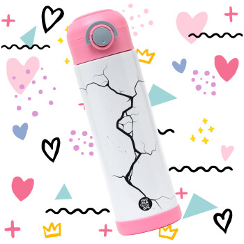 Cracked, Children's hot water bottle, stainless steel, with safety straw, PINK (500ml)