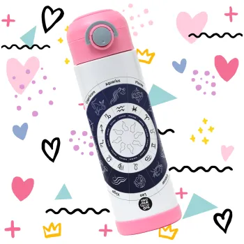 Ζωδιακός κύκλος, Children's hot water bottle, stainless steel, with safety straw, PINK (500ml)
