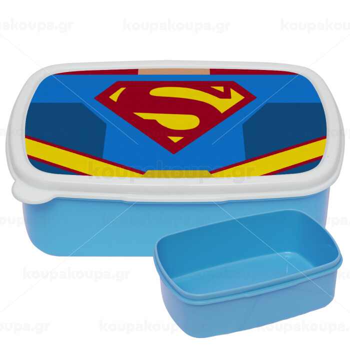 Superman flat, ΜΠΛΕ παιδικό δοχείο φαγητού (lunchbox) πλαστικό (BPA-FREE) Lunch Βox M18 x Π13 x Υ6cm