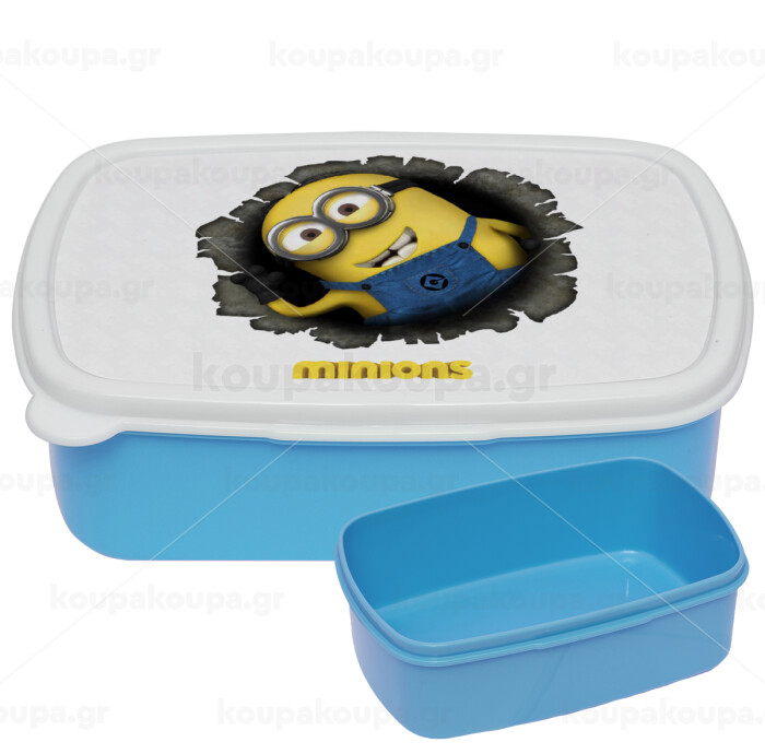 Minions hi, ΜΠΛΕ παιδικό δοχείο φαγητού (lunchbox) πλαστικό (BPA-FREE) Lunch Βox M18 x Π13 x Υ6cm