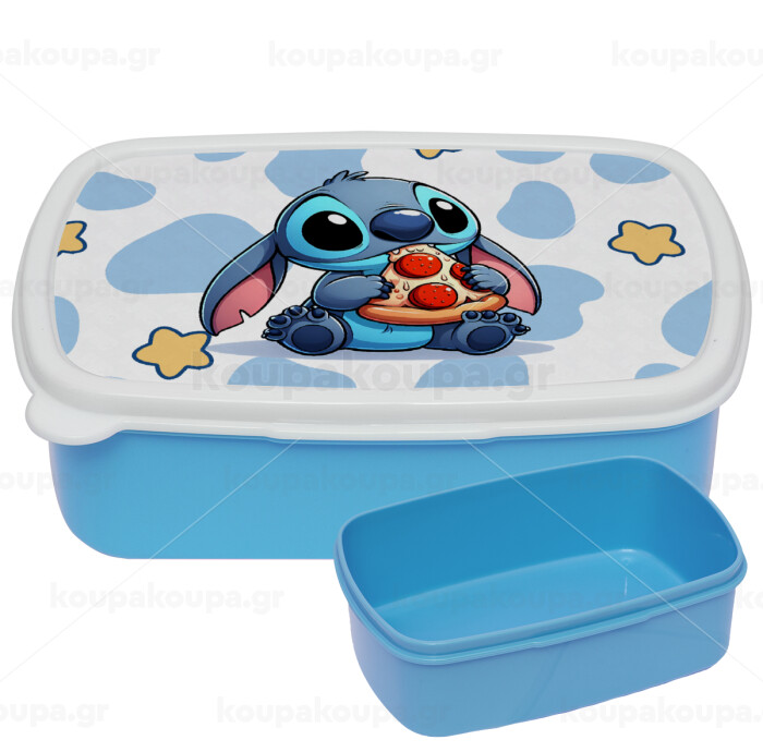 Stitch Pizza, ΜΠΛΕ παιδικό δοχείο φαγητού (lunchbox) πλαστικό (BPA-FREE) Lunch Βox M18 x Π13 x Υ6cm