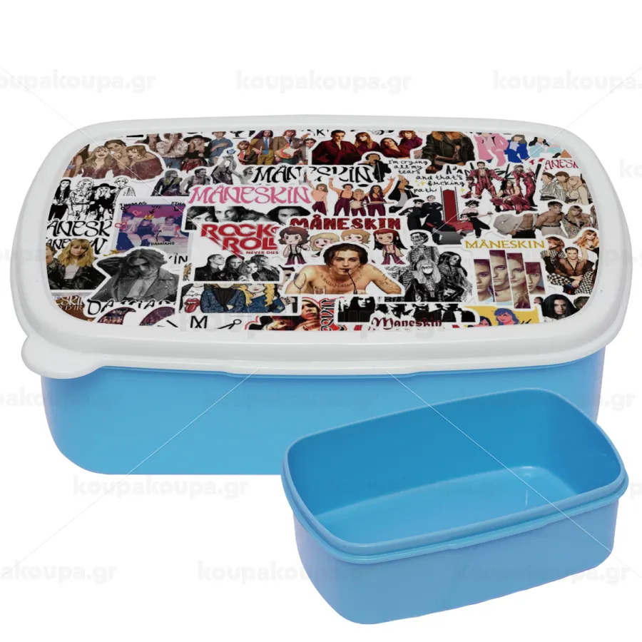 Maneskin stickers, ΜΠΛΕ παιδικό δοχείο φαγητού (lunchbox) πλαστικό (BPA-FREE) Lunch Βox M18 x Π13 x Υ6cm