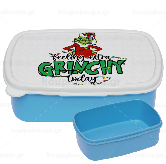 Grinch Feeling Extra Grinchy Today, ΜΠΛΕ παιδικό δοχείο φαγητού (lunchbox) πλαστικό (BPA-FREE) Lunch Βox M18 x Π13 x Υ6cm