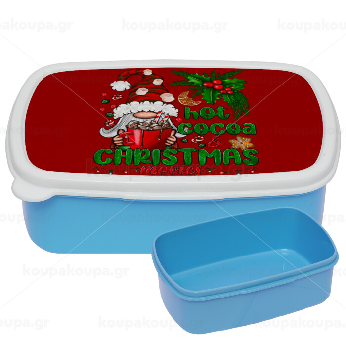 Hot cocoa and Christmas movies, ΜΠΛΕ παιδικό δοχείο φαγητού (lunchbox) πλαστικό (BPA-FREE) Lunch Βox M18 x Π13 x Υ6cm