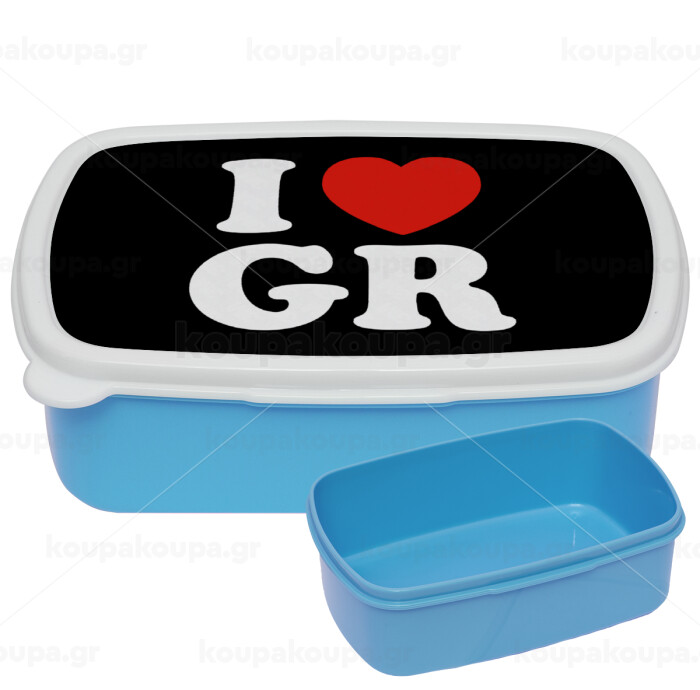 I Love GR, ΜΠΛΕ παιδικό δοχείο φαγητού (lunchbox) πλαστικό (BPA-FREE) Lunch Βox M18 x Π13 x Υ6cm