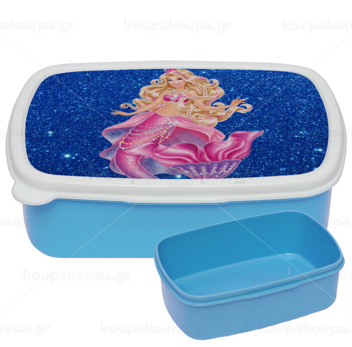 Barbie mermaid blue, ΜΠΛΕ παιδικό δοχείο φαγητού (lunchbox) πλαστικό (BPA-FREE) Lunch Βox M18 x Π13 x Υ6cm