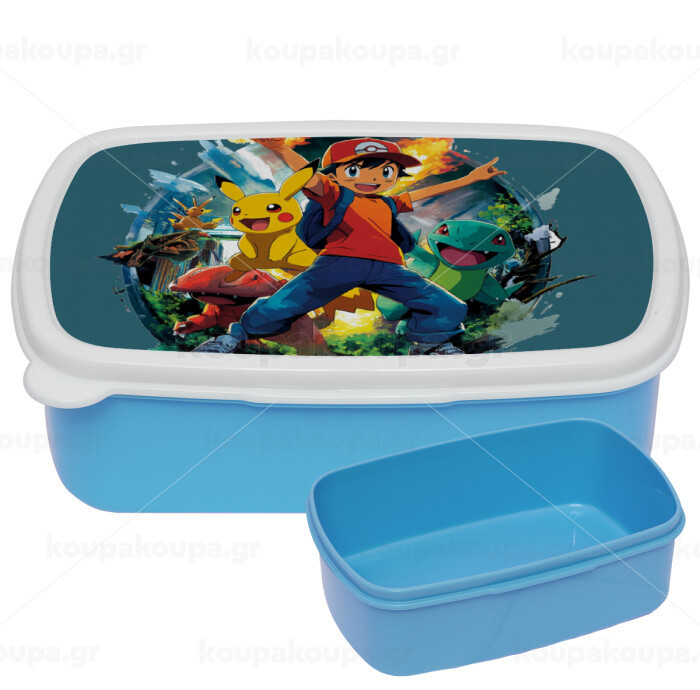 Ash Ketchum & Pikachu, ΜΠΛΕ παιδικό δοχείο φαγητού (lunchbox) πλαστικό (BPA-FREE) Lunch Βox M18 x Π13 x Υ6cm