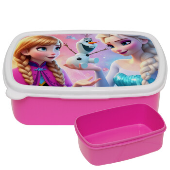Elsa & Anna Princess, ΡΟΖ παιδικό δοχείο φαγητού (lunchbox) πλαστικό (BPA-FREE) Lunch Βox M18 x Π13 x Υ6cm
